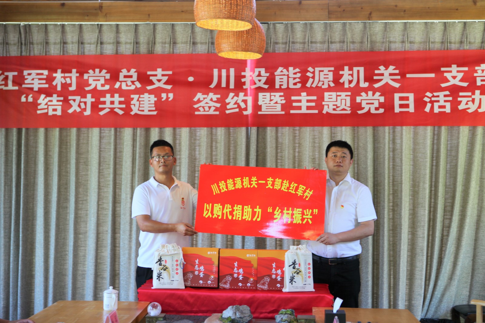 活動(dòng)現(xiàn)場(chǎng),雙方簽訂《企地黨支部結(jié)對(duì)共建協(xié)議書》,共同聆聽紅色微黨課,重溫入黨誓詞,重溫紅色記憶、汲取奮進(jìn)力量。川投能源機(jī)關(guān)第一黨支部向紅軍村黨總支贈(zèng)送了精選黨建類書籍并開展“以購代捐”活動(dòng),以消費(fèi)幫扶助力鄉(xiāng)村振興。