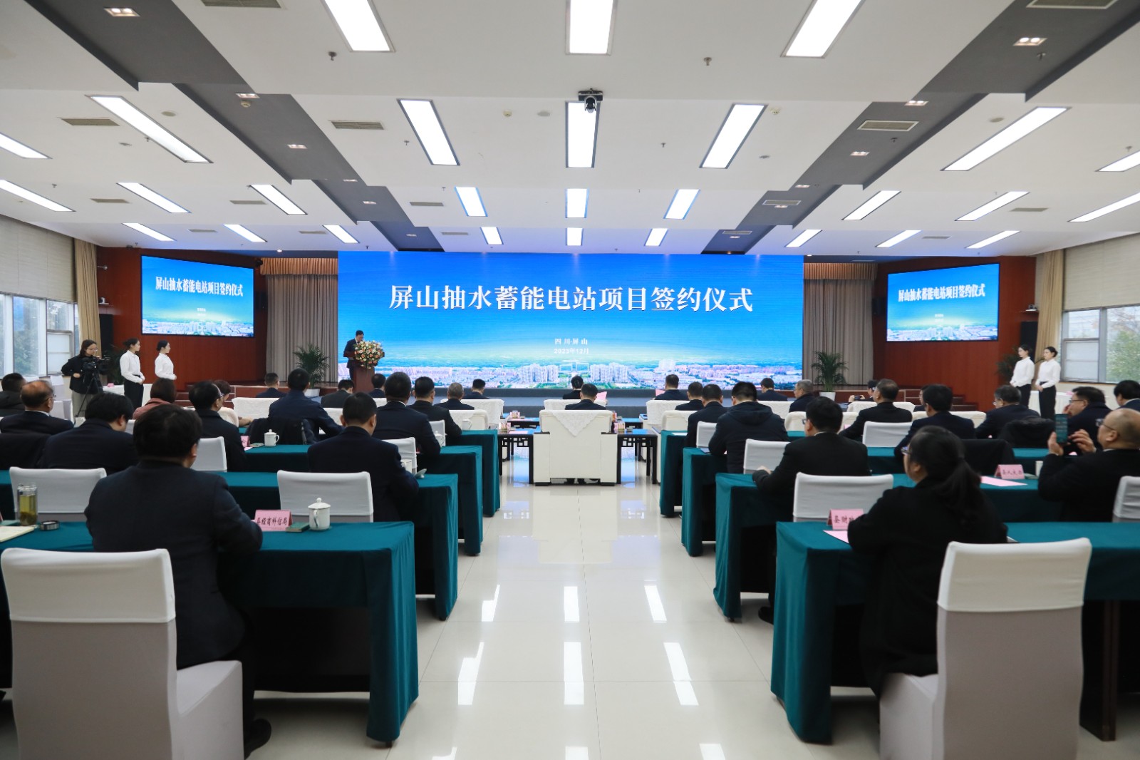 12月29日,屏山縣人民政府與四川川投能源股份有限公司、雅礱江水電開發(fā)公司、葛洲壩集團聯(lián)合體簽訂屏山抽水蓄能電站項目投資合作協(xié)議。川投集團黨委書記、董事長,川投能源董事長吳曉曦;川投集團黨委副書記、副董事長、總經(jīng)理李文志;宜賓市委副書記曾令舉;市政府副市長周文宇;川投集團副總經(jīng)理張昊;葛洲壩集團三峽建設(shè)公司副總經(jīng)理許華;葛洲壩集團市場投資開發(fā)部副總經(jīng)理李博;中國電建集團成勘院副總經(jīng)理鞠其鳳;川投能源黨委書記、副董事長、總經(jīng)理楊洪;川投集團總經(jīng)理助理、戰(zhàn)投部部長田傳平;雅礱江水電開發(fā)公司副總工程師范林;市能源局副局長邵睿;屏山縣委書記代軍;縣委副書記、縣長趙丹;縣人大常委會主任冷遠林;縣政協(xié)主席林敏;縣委副書記羅昕出席簽約儀式。