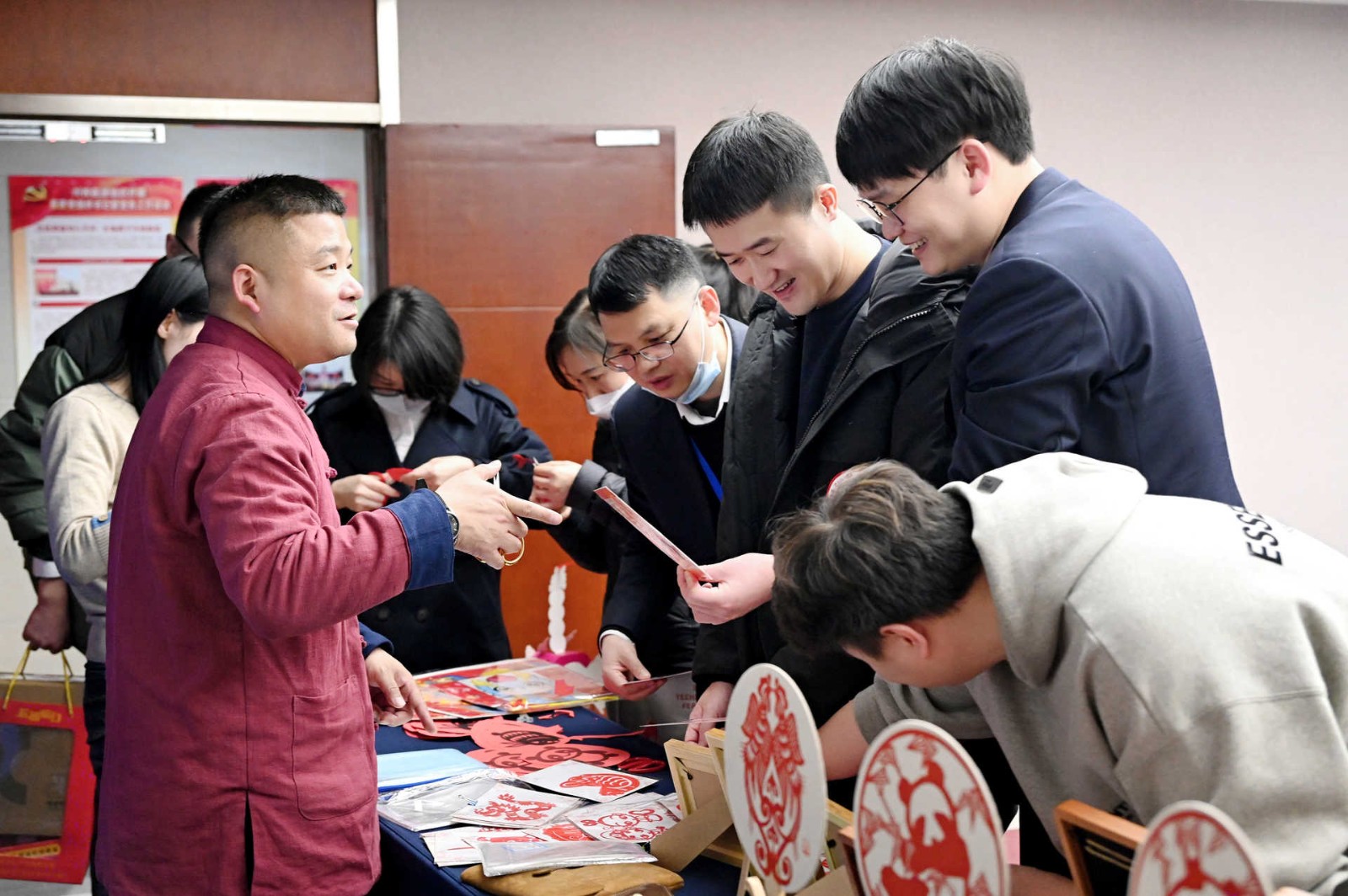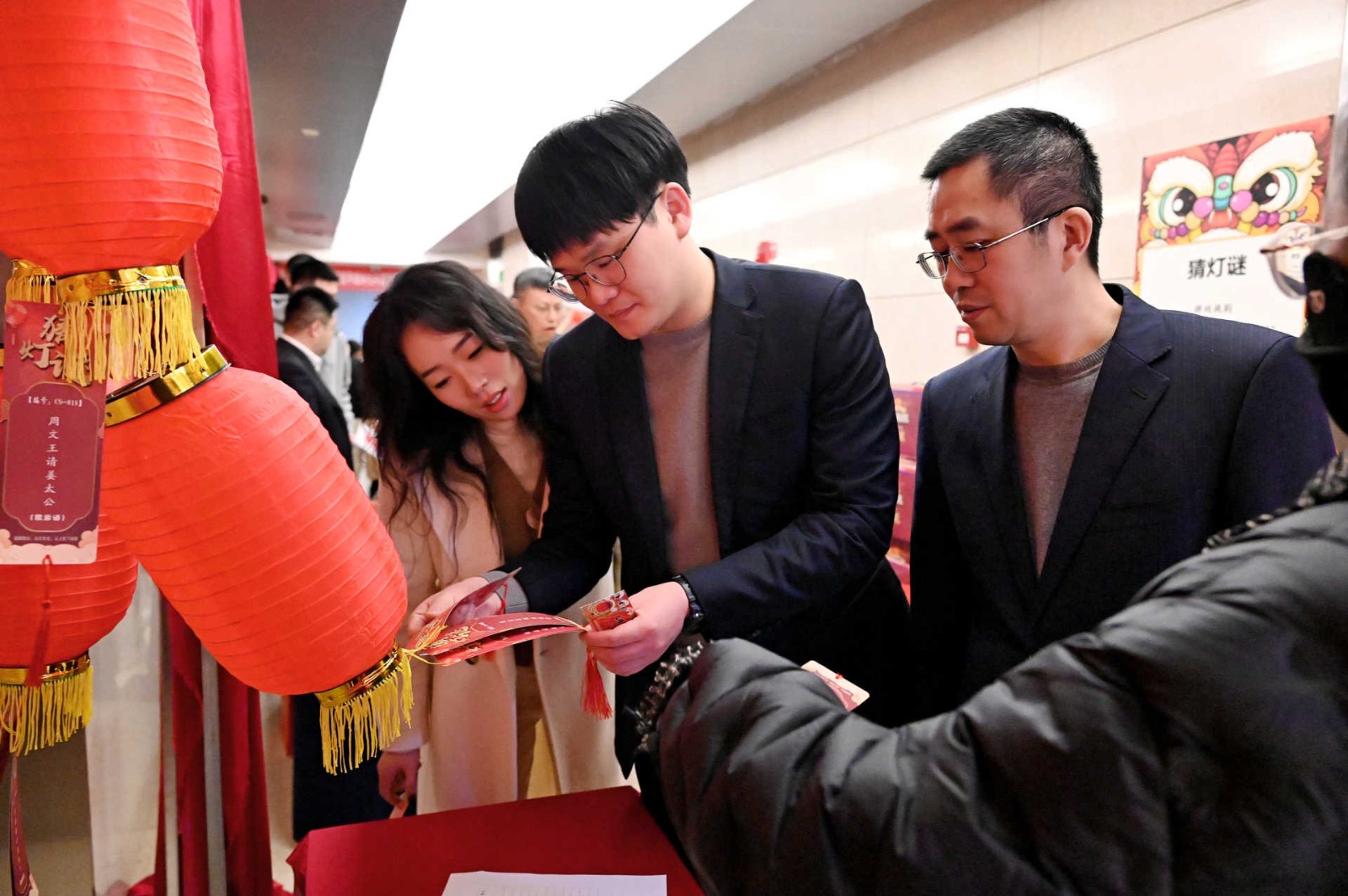 此次活動(dòng)采用游園方式,現(xiàn)場設(shè)置了民俗體驗(yàn)區(qū)、非遺手作區(qū)、民俗體驗(yàn)區(qū)、新春互動(dòng)區(qū)、游戲互動(dòng)區(qū)等5個(gè)活動(dòng)區(qū)域,涵蓋猜燈謎、剪窗花、做龍燈、滾滾樂等8個(gè)活動(dòng)?;顒?dòng)現(xiàn)場每一處都用心裝扮,火紅的中國燈籠、精美的傳統(tǒng)對聯(lián)伴隨濃郁的新年味道彌散在會(huì)場的每一個(gè)角落。大家爭先恐后、玩勁十足,盡享新春的熱鬧與喜悅!有的圍著掛著紅線繩的燈謎卡片,仔細(xì)閱讀謎語,認(rèn)真思考,沉浸在猜謎的樂趣中;有的圍在四川剪紙非遺傳承人莊叢燦老師周圍,一邊聆聽著剪紙的技巧,一邊仔細(xì)修理邊角,用心精雕細(xì)琢;有的在學(xué)習(xí)制作龍燈,他們展現(xiàn)出極高的熱情和創(chuàng)造力,根據(jù)自己的想象,給龍燈增添了各種裝飾,如彩紙、亮片等,使得每個(gè)龍燈都獨(dú)具特色。