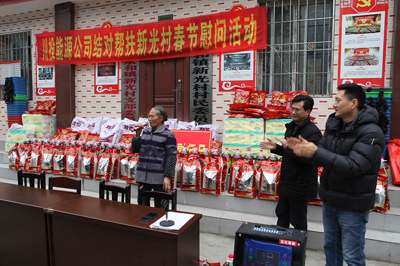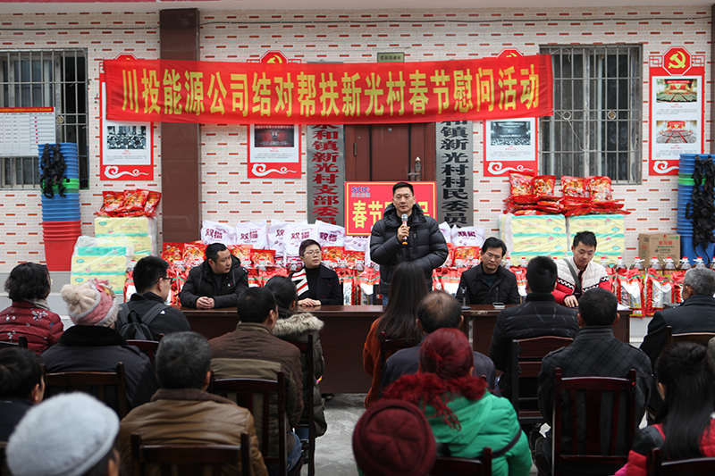 慰問現(xiàn)場,冉書記代表公司黨委和全體員工,對新光村父老鄉(xiāng)親表示誠摯的新春祝福和問候。冉書記指出,黨的十九大吹響了全面消滅貧困、實現(xiàn)小康號角,經(jīng)過幾年的努力,川投能源對口幫扶村面貌煥然一新,這得益于黨和國家的好政策,得益于扶貧干部和當(dāng)?shù)卮甯刹康墓餐?,得益于廣大鄉(xiāng)親父老的勤勞、智慧和汗水。接下來,川投能源將繼續(xù)深入貫徹中央、省委及集團公司精準(zhǔn)脫貧精神,創(chuàng)新扶貧工作思路,提高幫扶工作標(biāo)準(zhǔn),立足實際,努力為幫扶村群眾辦更多的實事、好事,以優(yōu)異的工作業(yè)績喜迎新中國成立70周年。