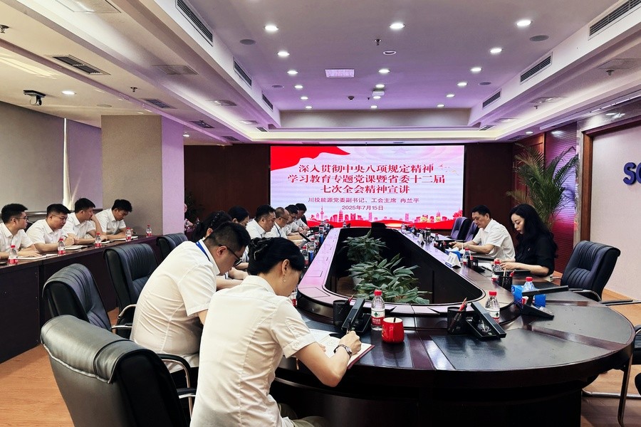 7月15日上午,川投能源黨委副書記、工會主席冉蘭平赴川投電力公司,作《深入學習貫徹中央八項規(guī)定精神 扎實推進黨的作風建設持續(xù)向好》專題黨課輔導,并圍繞省委十二屆七次全會精神開展專題宣講,為推動公司高質量發(fā)展凝聚共識、注入動能。川投電力公司黨委書記、董事長楊濤主持會議。