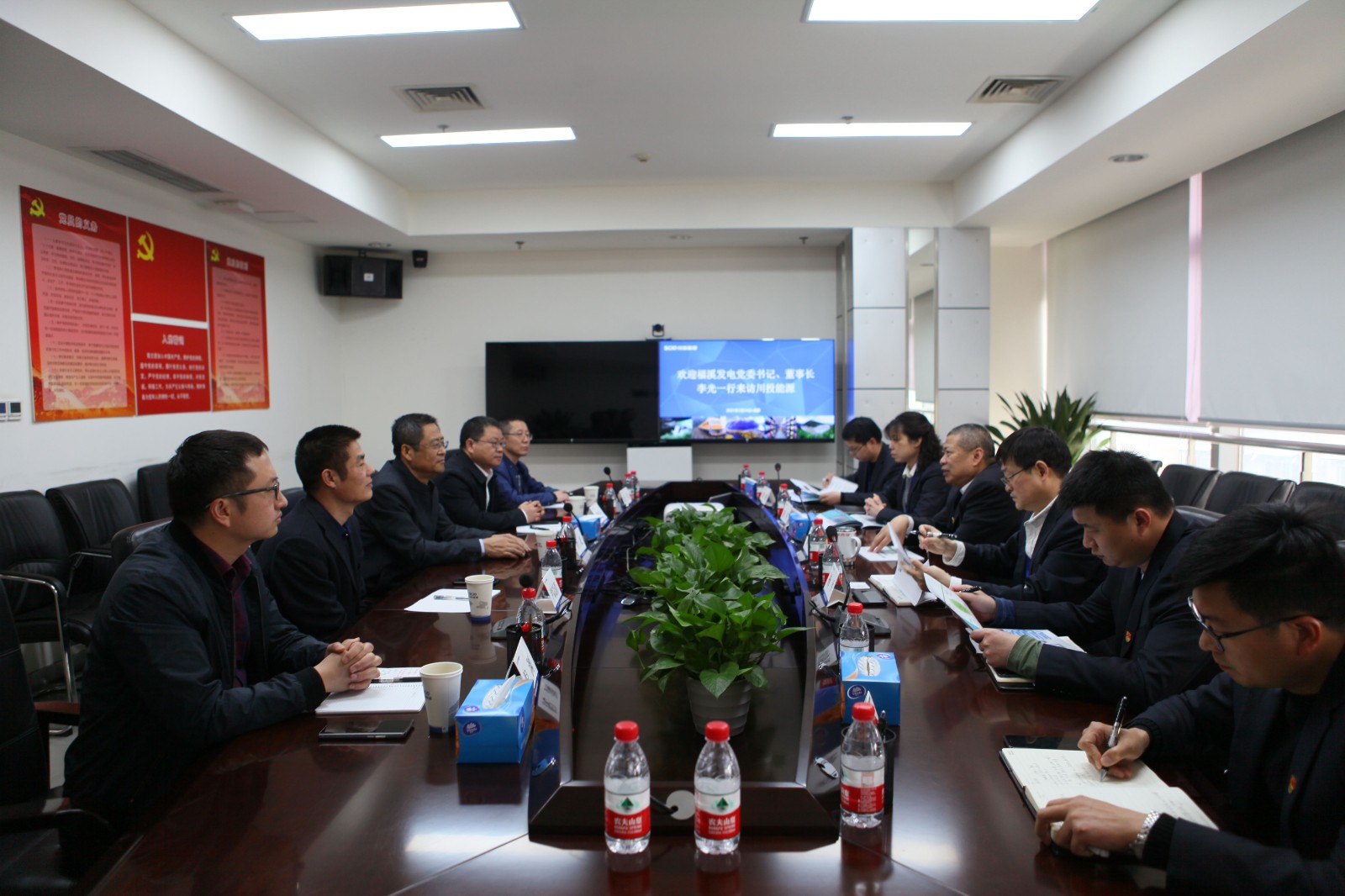中電福溪總經(jīng)理茍發(fā)全、副總經(jīng)理尹以清及營銷發(fā)展部負責同志;公司黨委委員、副總經(jīng)理楊平,黨委委員、財務(wù)總監(jiān)劉好,辦公室、戰(zhàn)略發(fā)展部、項目投資部負責人參加座談。