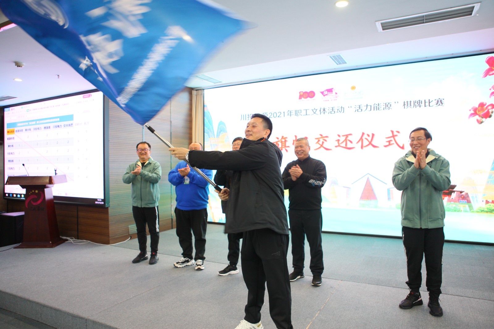 閉幕式上,進行了旗幟歸還儀式,川投能源黨委副書記、工會主席冉蘭平揮舞著旗幟熱情高呼“活力能源,明年再見!”,并帶領(lǐng)大家共同唱響《年輕的朋友來相會》。2021年川投能源“活力能源”職工文體活動圓滿落下帷幕,新的一年川投能源一定會在川投集團的正確領(lǐng)導下,起好步,開新局,以優(yōu)異的成績喜迎黨的二十大勝利召開。