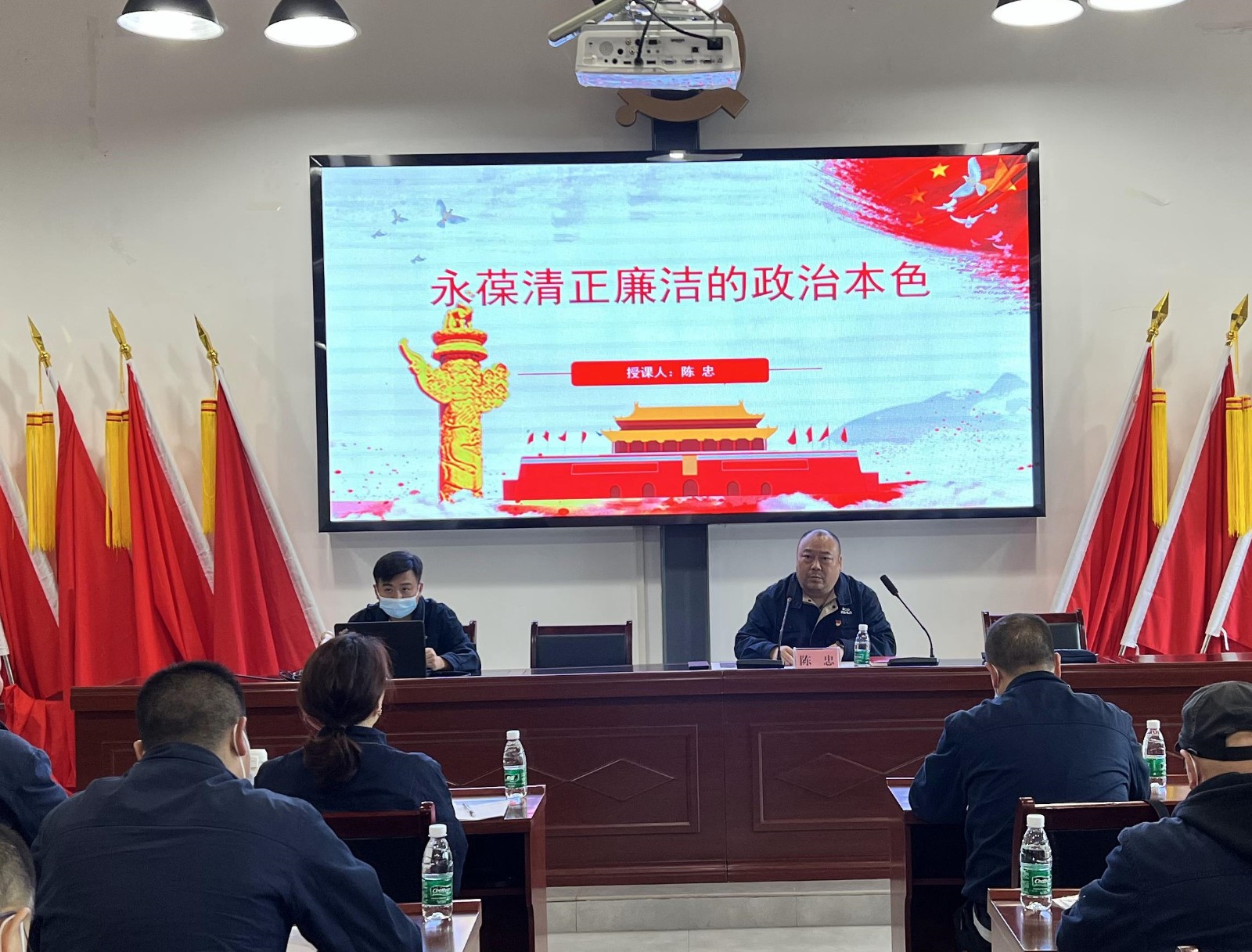 隨后陳忠從永葆清正廉潔的政治本色,要把增強黨性修養(yǎng)作為終身課題;永葆清正廉潔的政治本色,要嚴以律己、心存敬畏;永葆清正廉潔的政治本色,要傳承優(yōu)良作風,涵養(yǎng)浩然正氣;永葆清正廉潔的政治本色,要堅持秉公用權,站穩(wěn)人民立場四個方面闡述了深化黨風廉政建設、營造風清氣正政治氛圍的重要意義和主要舉措;強調大家必須牢記,全面從嚴治黨永遠在路上,黨的自我革命永遠在路上,決不能有松勁歇腳、疲勞厭戰(zhàn)的情緒,必須持之以恒推進全面從嚴治黨,深入推進新時代黨的建設新的偉大工程,以黨的自我革命引領社會革命。黨課結束后,大家共同觀看了由中央宣傳部攝制的大型電視專題片《領航》之“自我革命”,進一步鞏固了以嚴的基調強化正風肅紀、堅決打贏反腐敗斗爭的信心和決心。