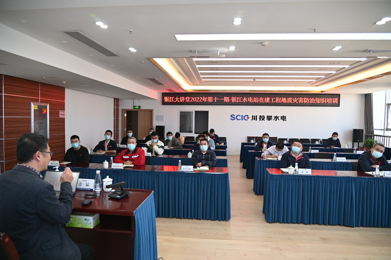 為提高地質(zhì)災害防治能力,繃緊安全生產(chǎn)這根弦,2022年12月2日攀水電公司利用銀江大講堂平臺,組織各參建單位開展了在建工程地質(zhì)災害防治知識培訓,邀請到攀枝花市國土空間生態(tài)修復與地質(zhì)災害防治中心高級工程師佘猛進行授課,攀水電公司副總經(jīng)理唐伽出席了培訓,公司各部門及各參建單位防汛值班人員代表共計30余人參加了培訓,培訓由工程管理部經(jīng)理嚴瑞平主持。