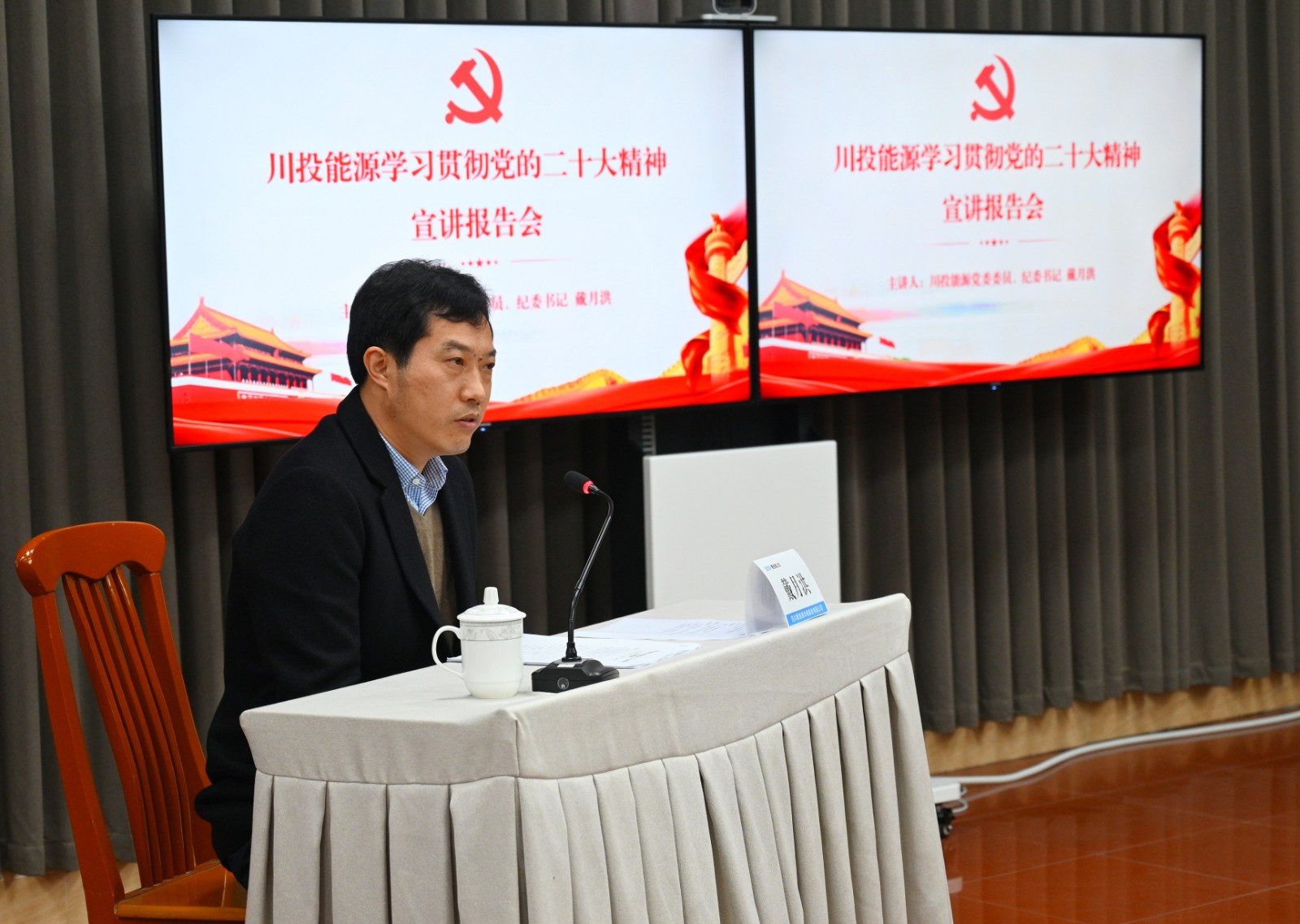 為深入學(xué)習(xí)宣傳貫徹黨的二十大精神,堅(jiān)定推動(dòng)黨的二十大決策部署在公司落地見效,12月12日上午,川投能源黨委委員、紀(jì)委書記戴月洪到槽漁灘公司專題宣講黨的二十大精神,槽漁灘公司黨委副書記張啟林主持會(huì)議。