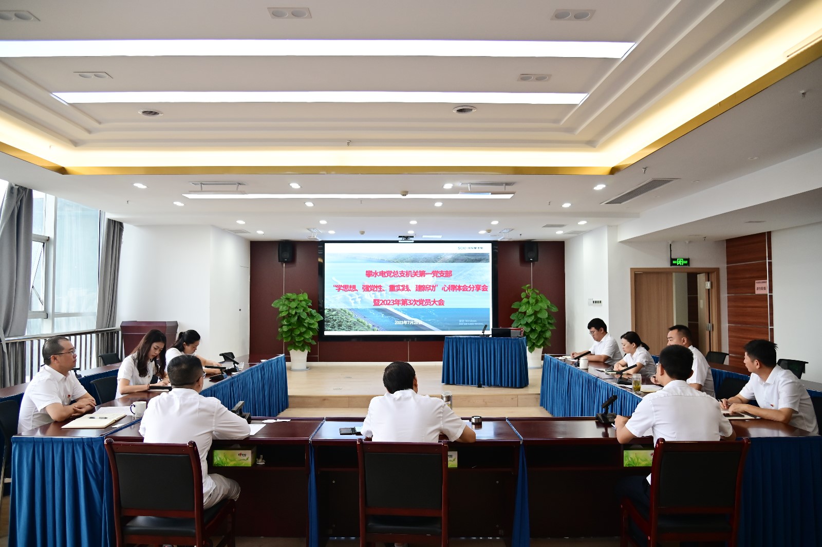 為深入推動學(xué)習(xí)貫徹習(xí)近平新時(shí)代中國特色社會主義思想主題教育走深走實(shí),7月28日上午,攀水電機(jī)關(guān)第一黨支部開展了“學(xué)思想、強(qiáng)黨性、重實(shí)踐、建新功”心得體會分享會暨2023年第3次黨員大會。支部全體黨員、入黨積極分子等14人參加此次會議。