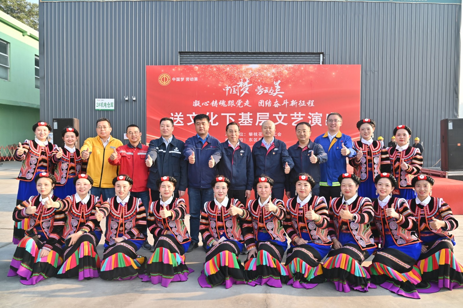 為深入學習貫徹黨的二十大精神、習近平總書記來川視察重要指示精神,11月29日上午,由攀枝花市總工會主辦,東區(qū)總工會、攀水電公司承辦的“中國夢·勞動美——凝心鑄魂跟黨走 團結奮斗新征程”2023年“送文化下基層”文藝演出在銀江水電站工地火熱開展。川投能源副總經(jīng)理,攀水電公司黨總支書記、董事長徐孝剛出席活動,攀枝花市總工會、東區(qū)總工會、攀水電公司及參建單位200余人參加。