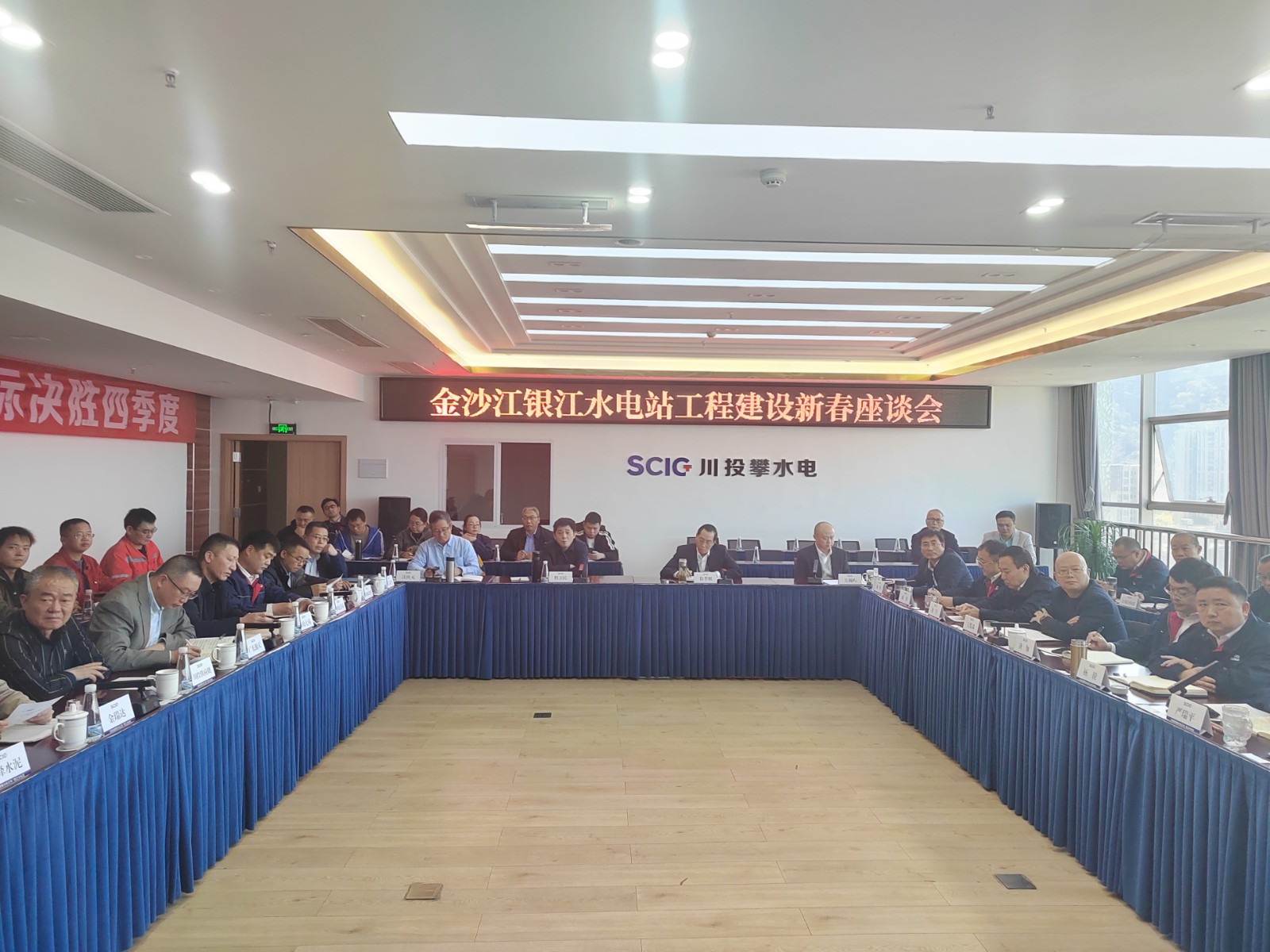 為全面總結(jié)2023年工程建設(shè)情況,安排部署春節(jié)期間及2024年重點(diǎn)工作,1月30日,攀水電公司組織召開銀江水電站新春座談會(huì),川投能源副總經(jīng)理、公司黨總支書記、董事長徐孝剛,公司領(lǐng)導(dǎo)、部門負(fù)責(zé)人、參建單位主要負(fù)責(zé)人及材料供應(yīng)商等共計(jì)40余人參加會(huì)議,會(huì)議由公司黨總支副書記、總經(jīng)理吳巍嶼主持。