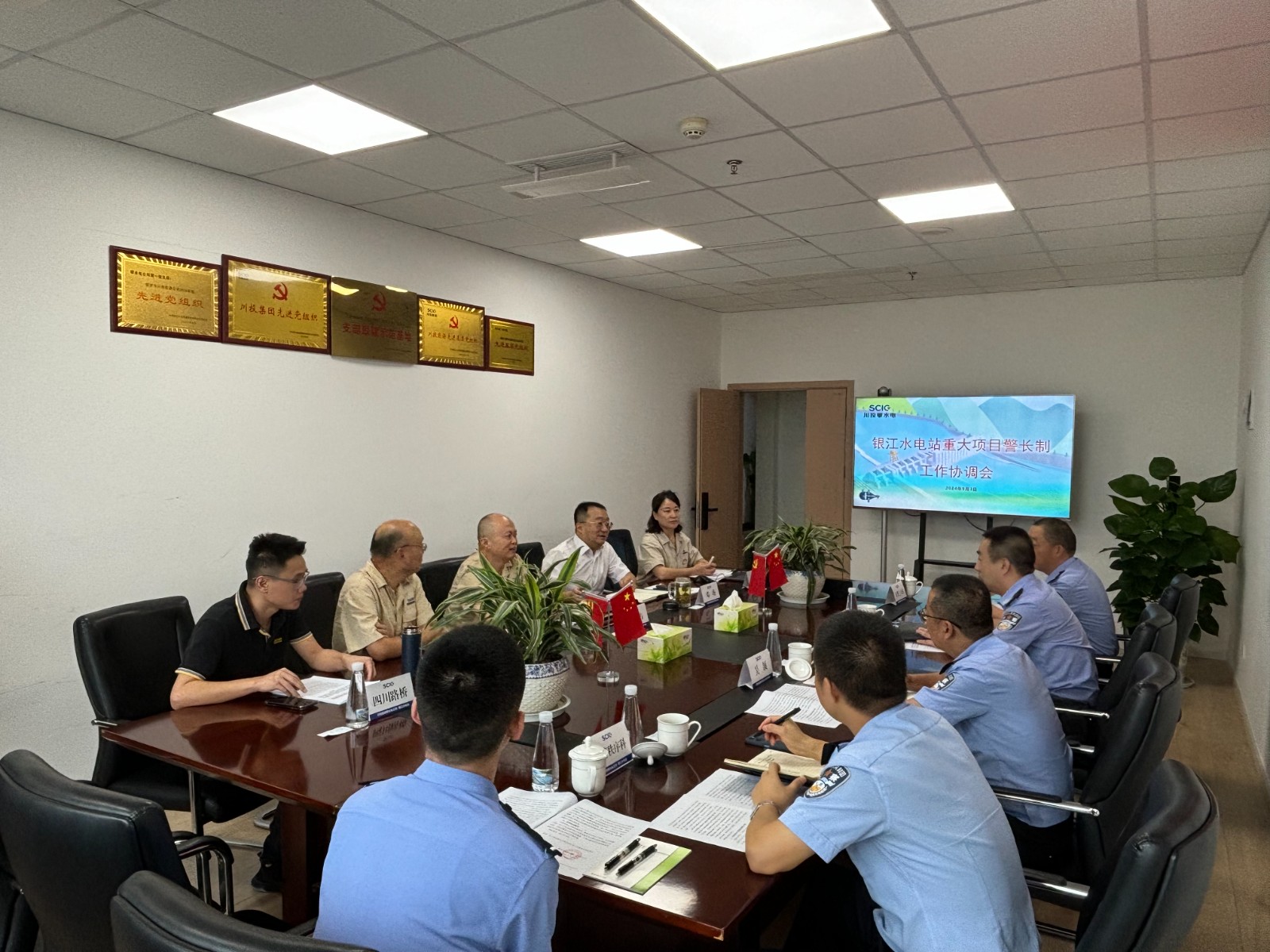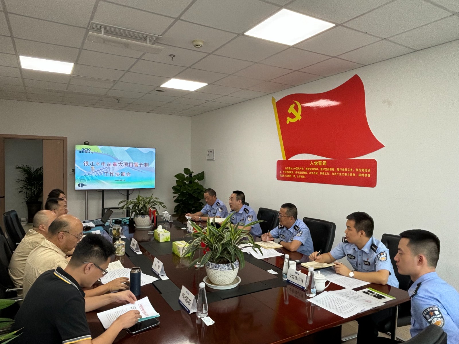 為保障銀江水電站重大項目安全順利推進,護航服務(wù)攀枝花市高質(zhì)量發(fā)展建設(shè)共同富裕試驗區(qū),攀枝花市公安局與攀水電公司建立了銀江水電站“重大項目警長制”,9月3日上午,市公安局機關(guān)黨委副書記張征帶隊赴公司召開工作協(xié)調(diào)會議。攀水電公司黨總支副書記、總經(jīng)理、聯(lián)絡(luò)工作組組長吳巍嶼出席會議,交警支隊辦公室、秩序科、三大隊及公司相關(guān)部門等10余人參加會議。