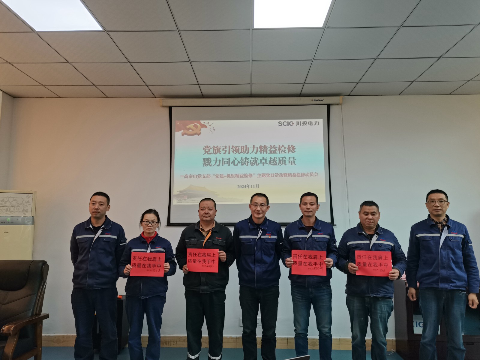 為確保檢修安全、提升檢修質(zhì)量、抓好檢修進度,近日,川投電力黨委高奉山黨支部將黨建融入重點工作,開展“黨建+精益檢修”主題黨日活動,拉開了“1+2+3+4”黨建引領融入檢修工作的序幕。高奉山黨支部書記、副廠長王橋主持會議并講話,支部黨員和員工代表參加。