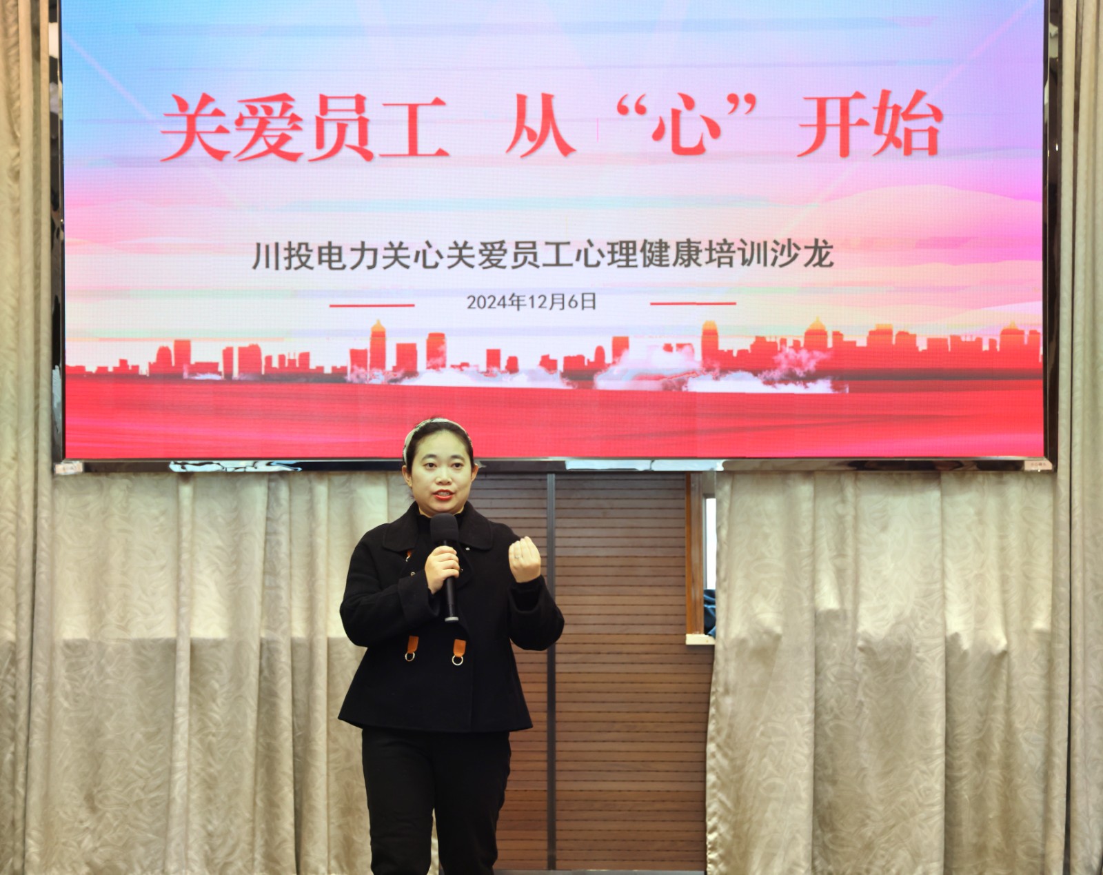 按照川投電力公司“四季暖陽(yáng)”員工關(guān)愛(ài)行動(dòng)工作部署,為提高員工心理素質(zhì),保持良好狀態(tài),提高工作效率,增強(qiáng)企業(yè)凝聚力和競(jìng)爭(zhēng)力,近日,川投電力公司人力資源部、工會(huì)辦公室組織開(kāi)展了關(guān)心關(guān)愛(ài)員工心理健康培訓(xùn)沙龍,為本部員工送去冬日的溫暖。