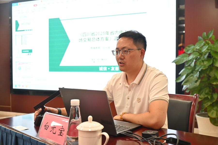 此次培訓邀請到四川能投綜合能源有限責任公司電力交易分公司副總經(jīng)理白元寶,圍繞四川省電力銷售政策、交易實施方案等方面內容進行詳細講授。白元寶首先對《四川省2025年省內電力市場交易總體方案》進行政策解讀;再從“水火風光同臺競爭、分時簽約銜現(xiàn)貨、零售市場防風險”核心變化點、對市場成員要求、電力批發(fā)交易、電力零售交易、價格及結算機制、市場銜接事項等方面進行講授;最后針對發(fā)電企業(yè)的電力交易方案,從中長期及現(xiàn)貨交易,圍繞規(guī)則要求、市場形勢、邊界條件、交易組織模式等方面進行詳細講解,并對現(xiàn)貨市場下的中長期交易、增強抗市場風險能力、構建交易組織體系、現(xiàn)貨市場的影響等重點、難點的核心事項進行了分析和講授。