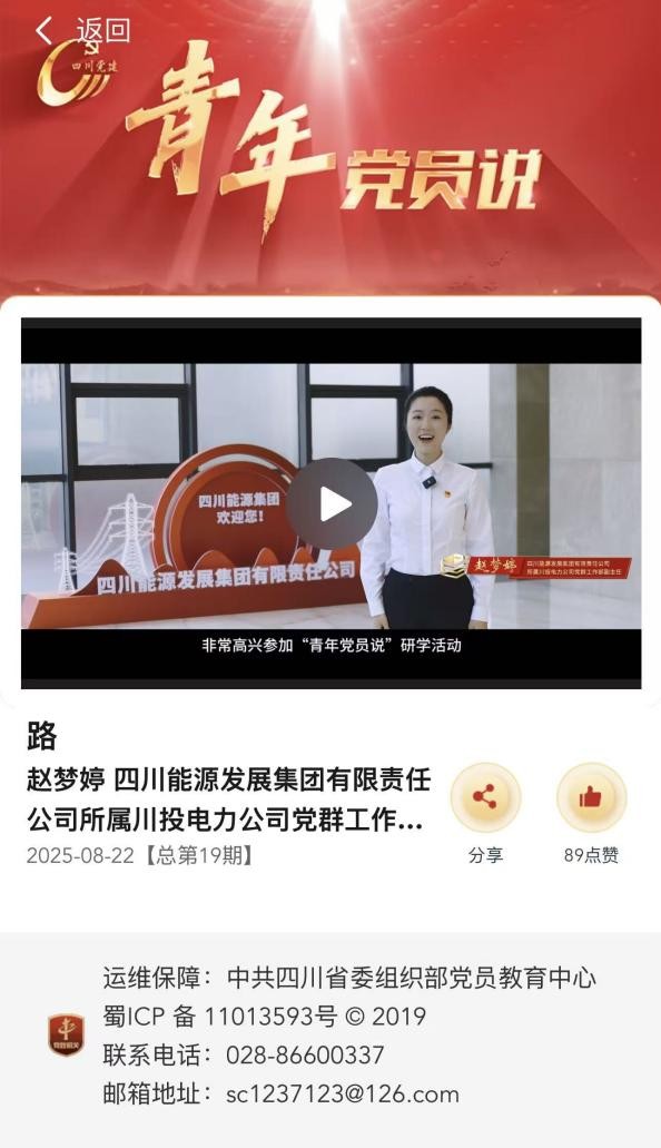 近期,四川省委組織部舉辦的“青年黨員說”研學(xué)活動(dòng)正在四川黨建官網(wǎng)等平臺(tái)集中展播。省國(guó)資委黨委共推薦10名青年黨員代表圍繞“學(xué)習(xí)新思想,爭(zhēng)當(dāng)改革先鋒”為主題,談體會(huì)、談感悟。其中,由四川能源發(fā)展集團(tuán)上報(bào)、川投能源推薦的作品《路》,通過講述“兩路”精神的歷史內(nèi)涵,結(jié)合川投電力腳基坪電廠震后緊急搶險(xiǎn)、天彭電力鳳鳴湖水庫(kù)飲水廊道清淤、玉田電廠為涼山州彝族村民送水送電等鮮活事例,展現(xiàn)能源人在逆行搶險(xiǎn)、為民服務(wù)和民族團(tuán)結(jié)中的責(zé)任擔(dān)當(dāng),號(hào)召新時(shí)代國(guó)企人賡續(xù)“兩路”精神,汲取奮進(jìn)力量,展現(xiàn)了能源國(guó)企的使命擔(dān)當(dāng)。