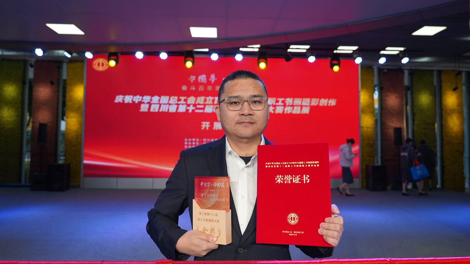 12月3日,由四川省總工會(huì)主辦的“慶祝中華全國(guó)總工會(huì)成立100周年書畫攝影采風(fēng)創(chuàng)作展暨四川省第十二屆職工書畫攝影大賽”頒獎(jiǎng)及展覽儀式在成都市勞動(dòng)人民文化宮廣場(chǎng)舉行。川投能源所屬攀水電公司員工田永志創(chuàng)作的攝影作品《銀江水電站建設(shè)(組圖)》,從1569件參賽作品中脫穎而出,憑借其扎實(shí)的攝影功底與鮮明的主題表達(dá),榮獲大賽金獎(jiǎng),位列獲獎(jiǎng)?wù)甙袷?。田永志不僅是本屆大賽攝影組三名金獎(jiǎng)得主之一,也是省屬企業(yè)中唯一獲得攝影組金獎(jiǎng)的選手。