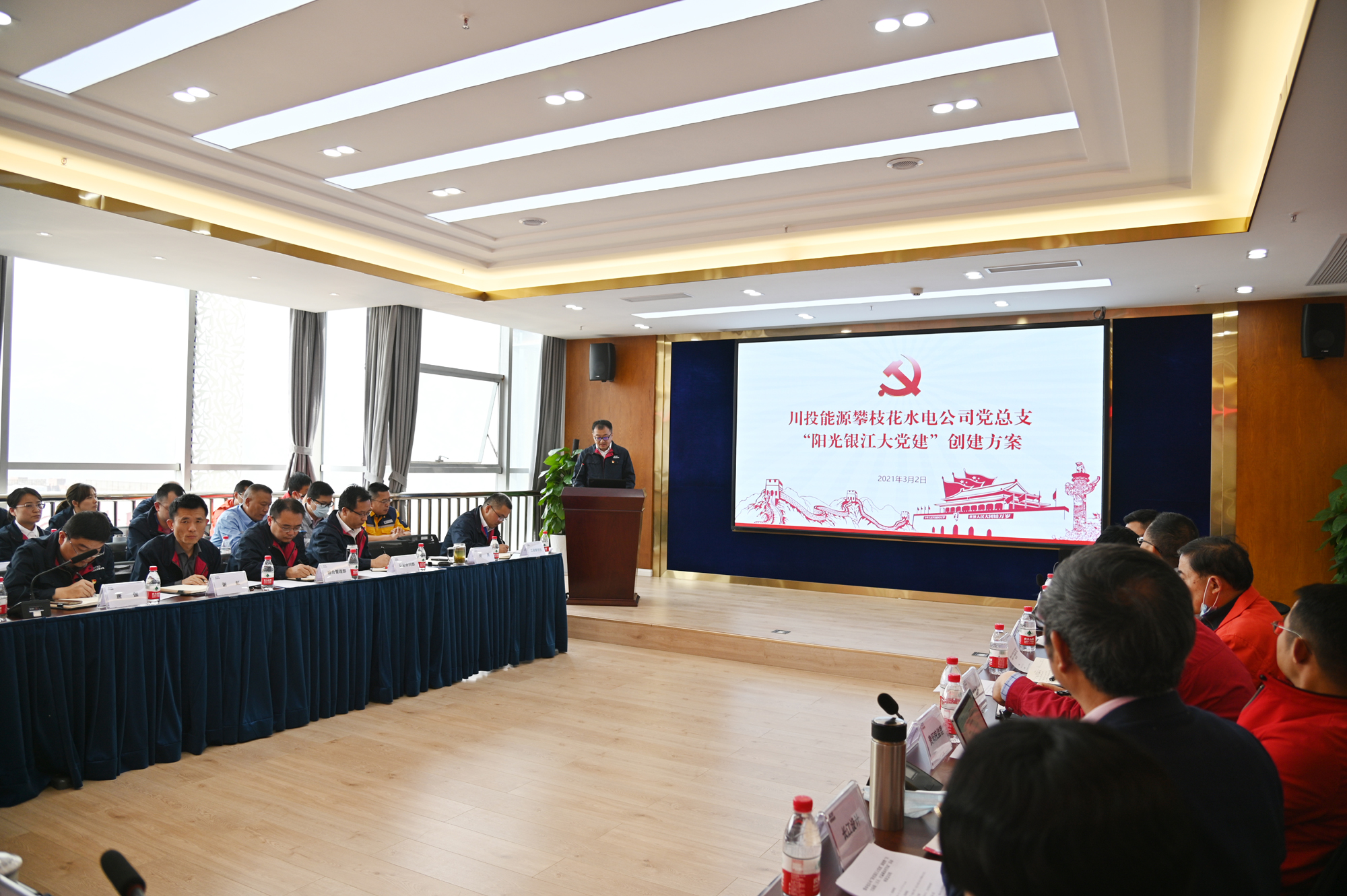 公司黨總支委員、董事會秘書、工會主席鄧勇匯報(bào)了“陽光銀江大黨建”創(chuàng)建方案,重點(diǎn)介紹了“十道陽光”行動(dòng)計(jì)劃的主題、組織、釋義、目標(biāo)以及措施;按照川投能源“初心腳印”黨員陣地建設(shè)工程的統(tǒng)一要求,部署了打造“支部聯(lián)建示范基地”的相關(guān)工作。