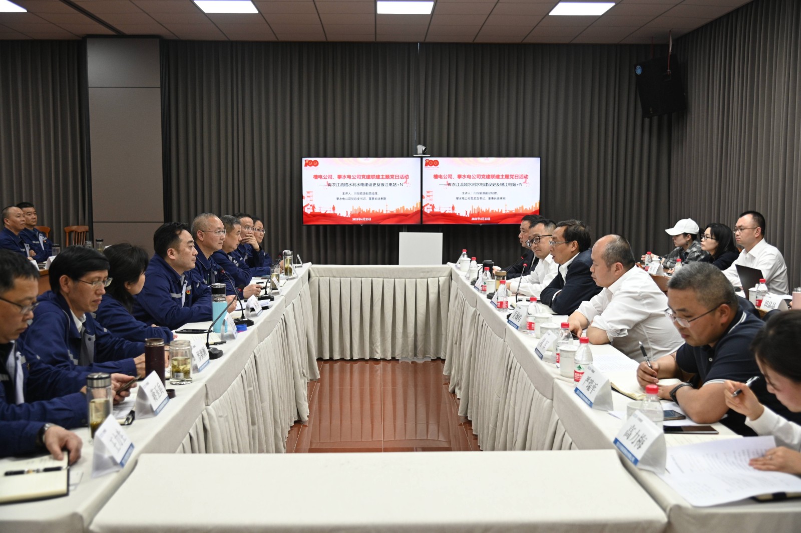 4月23-24日,在川投能源黨委2021年黨史學(xué)習(xí)教育專題培訓(xùn)暨“重訪初心地”主題活動(dòng)間隙,川投能源副總經(jīng)理、攀水電公司黨總支書記、董事長徐孝剛率攀水電公司經(jīng)營班子及部分黨員19人赴川投能源槽漁灘公司開展黨建共建主題黨日活動(dòng)及移民工作交流學(xué)習(xí)調(diào)研,槽漁灘公司黨委書記、董事長楊濤,黨委委員、副董事長王星,經(jīng)營班子和相關(guān)部門負(fù)責(zé)人20余人參加。