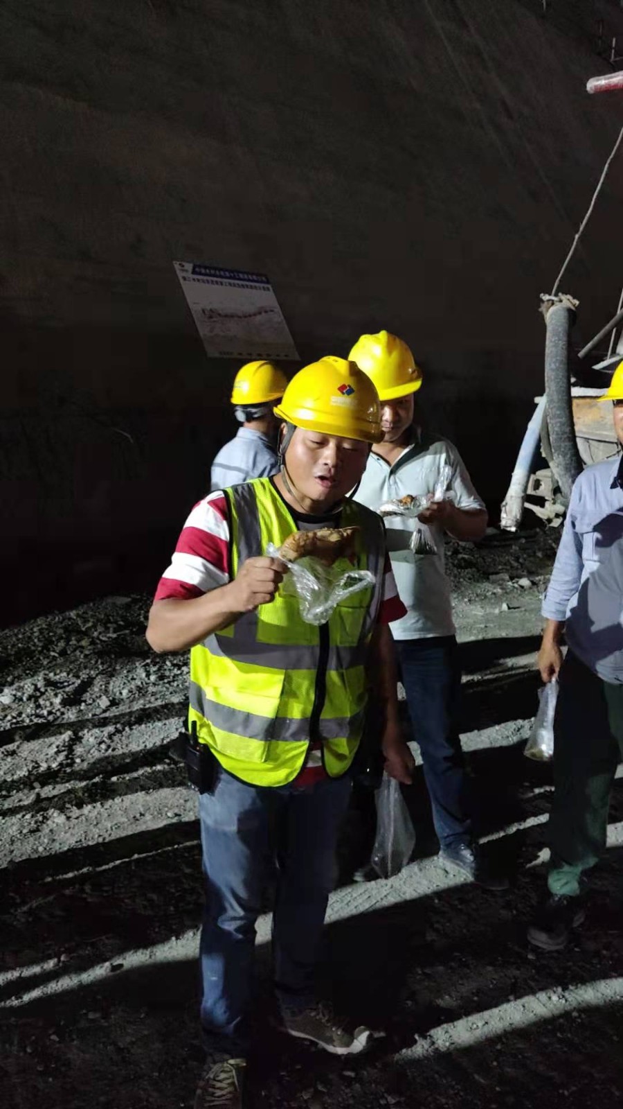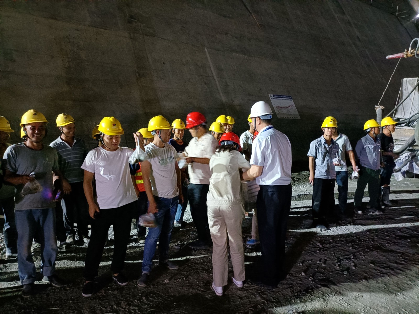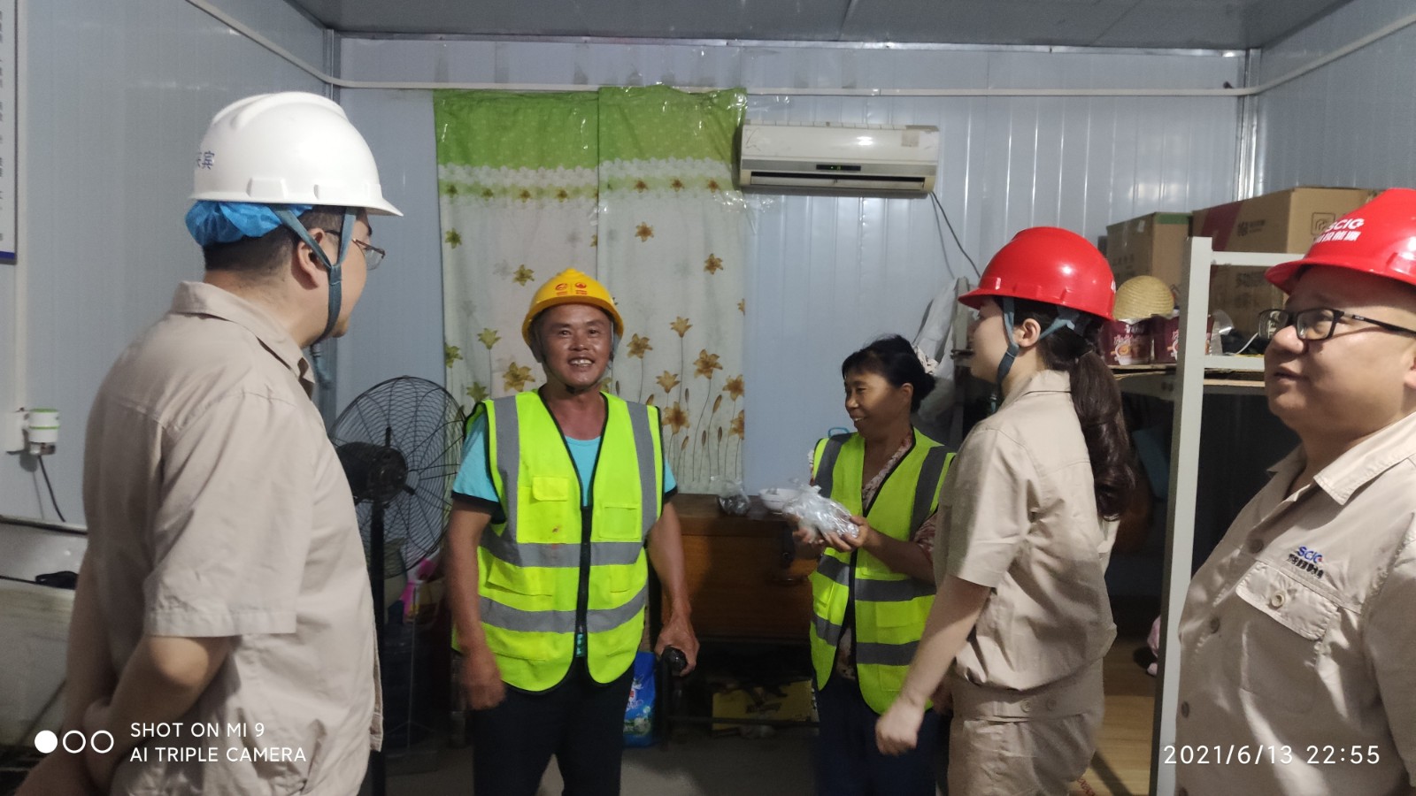 6月13日端午節(jié)前夕深夜,公司值班領(lǐng)導(dǎo)、黨總支委員、董事會(huì)秘書(shū)、工會(huì)主席鄧勇,總經(jīng)理助理唐伽帶領(lǐng)值班人員,對(duì)銀江水電站工地現(xiàn)場(chǎng)防洪度汛值班點(diǎn)位及施工現(xiàn)場(chǎng)進(jìn)行了檢查;公司志愿者服務(wù)隊(duì)共計(jì)10余人對(duì)節(jié)日期間堅(jiān)守在銀江水電站工地夜間施工的一線人員進(jìn)行了慰問(wèn)。