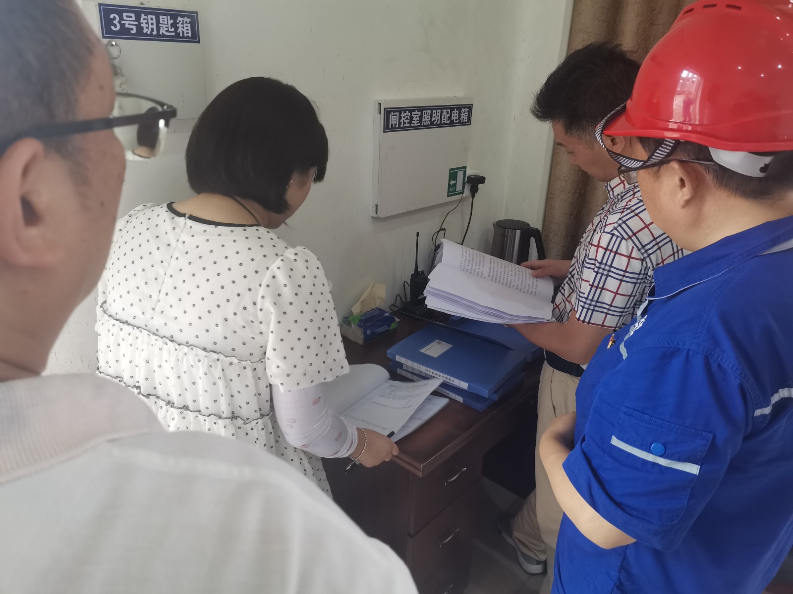 督查組一行在電廠大壩現(xiàn)場聽取了公司副總經(jīng)理、電廠廠長蔣玉兵就槽漁灘電廠防洪度汛工作的安排、部署及落實情況匯報;隨后對槽漁灘電廠防洪物質(zhì)的儲備情況以及防洪預(yù)案、防洪值班情況、隱患排查、上級防洪文件的傳達學(xué)習(xí)情況等資料進行了仔細檢查。