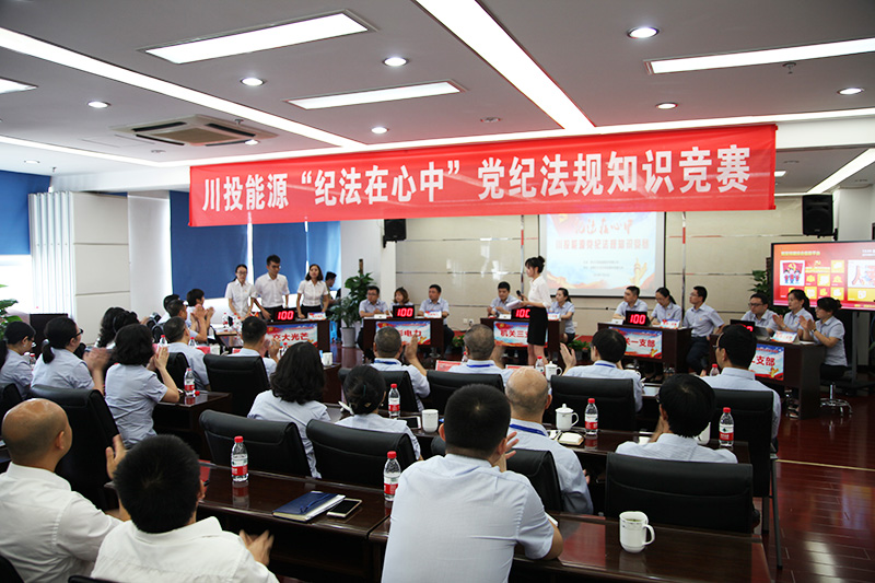 激情七月蓮花香,紀法銘記享安康。7月25日,由川投能源紀委主辦、交大光芒黨總支承辦的川投能源“紀法在心中”黨紀法規(guī)知識競賽在交大光芒生產(chǎn)基地會議室隆重舉行。集團公司紀檢監(jiān)察部趙艷到會指導(dǎo),川投能源領(lǐng)導(dǎo)班子成員、所屬企業(yè)黨政一把手、川投能源本部全體黨員和交大光芒部分黨員代表等共計50余人到現(xiàn)場觀看了知識競賽。川能源本部機關(guān)三個支部、所屬企業(yè)天彭電力、交大光芒等五個代表隊參加了紀法知識競賽。舉辦此次競賽活動,旨在促進全體黨員干部自覺以習(xí)近平新時代中國特色社會主義思想統(tǒng)領(lǐng)企業(yè)改革發(fā)展工作,用中央和省委最新決策部署引領(lǐng)思想行動,用黨紀條規(guī)規(guī)范廉潔從業(yè)行為,為川投能源健康可持續(xù)發(fā)展提供堅強的政治紀律保障。