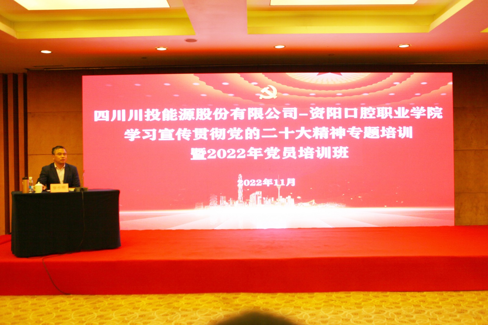 為深入學(xué)習(xí)宣傳貫徹黨的二十大精神,鞏固拓展黨史學(xué)習(xí)教育成果,不斷夯實(shí)全體黨員忠誠(chéng)擁護(hù)“兩個(gè)確立”、堅(jiān)決做到“兩個(gè)維護(hù)”的政治自覺、思想自覺、行動(dòng)自覺,11月21日-22日,川投能源黨委與資陽(yáng)口腔職業(yè)學(xué)院黨委共同舉辦學(xué)習(xí)宣傳貫徹黨的二十大精神專題培訓(xùn)暨2022年黨員培訓(xùn)班。川投能源黨委書記、副董事長(zhǎng)、總經(jīng)理?xiàng)詈槌鱿⑹谡n,資陽(yáng)口腔職業(yè)學(xué)院黨委書記、理事長(zhǎng)張中偉出席并作開班講話,川投能源黨委副書記、工會(huì)主席冉蘭平主持開班儀式。