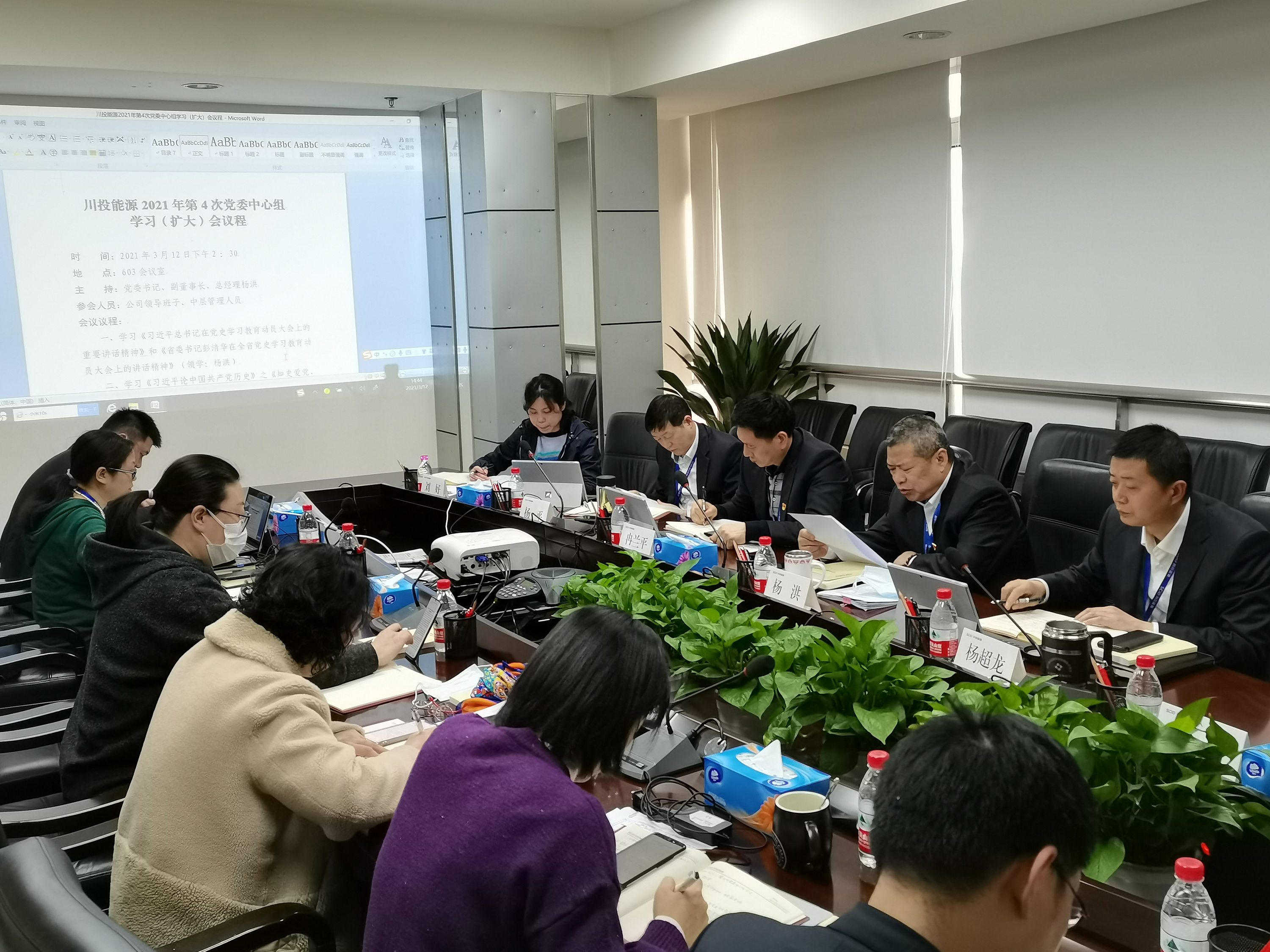 3月12日,川投能源召開黨委理論學(xué)習(xí)中心組學(xué)習(xí)(擴(kuò)大)會議,傳達(dá)習(xí)近平總書記在黨史學(xué)習(xí)教育動(dòng)員大會上的重要講話精神和省委書記彭清華在全省黨史學(xué)習(xí)教育動(dòng)員大會上的講話精神,并集中學(xué)習(xí)《習(xí)近平論中國共產(chǎn)黨歷史》之《知史愛黨、知史愛國》篇章。公司黨委書記、副董事長、總經(jīng)理?xiàng)詈橹鞒謺h并帶頭領(lǐng)學(xué)。公司領(lǐng)導(dǎo)班子成員、各部門負(fù)責(zé)人參加學(xué)習(xí)。